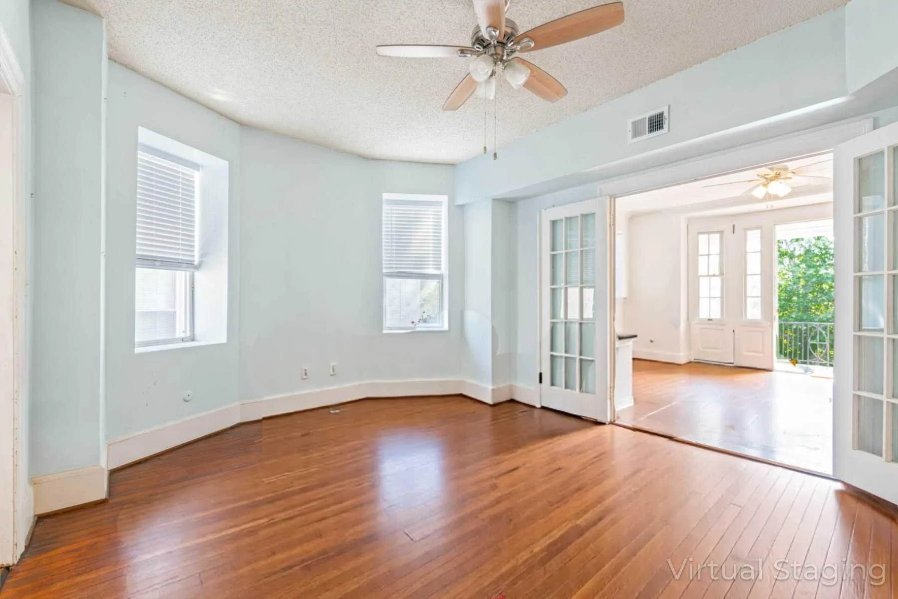 Unwind on your private balcony with a glass of wine as the sun sets over the tree-lined streets, or start your morning with a peaceful cup of coffee. Inside, high ceilings, bay windows, and rich architectural details—like built-ins, French doors, and classic period touches in the primary bath—create an inviting atmosphere filled with natural light. The kitchen boasts gorgeous wood flooring in a beautiful herringbone pattern, and modern conveniences while maintaining its historic appeal.