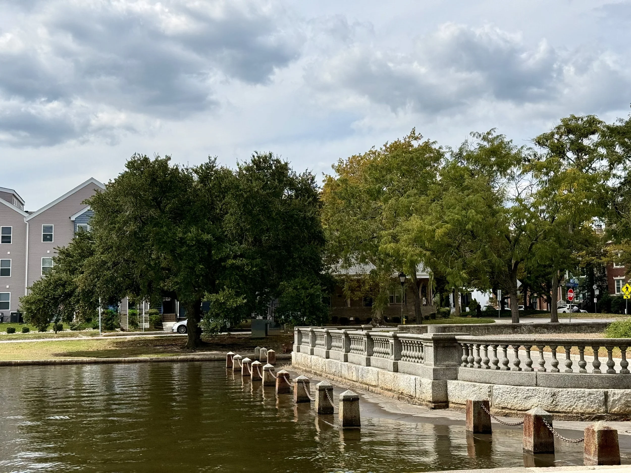As Norfolk was experiencing a surge of growth in the late 19th century, Ghent was developed as an early suburb connected to the city by the streetcar system. The Norfolk Company surveyed and platted the land for single-family homes, and hired John Graham, a civil engineer from Philadelphia, to design the new high-end suburb. Ghent was laid out in a grid pattern, with an emphasis on broad tree-lined avenues, large areas of green space, and a series of waterfront arches created by filling in portions of the shoreline of Smith’s Creek.